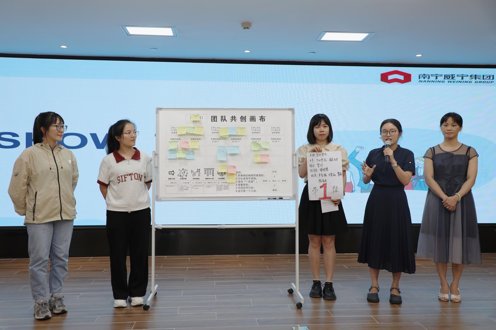 相比传统培训、宣讲授课模式,本次企业文化共识引导工作坊活动更强调全员参与性和团队协作性,参与学员分成“C7(中国)远航队”“生如夏花队”、“文化e家人队”、“黑魔仙队”等4个小组。以SWOT战略分析工具为分析框架,围绕“党建+企业文化如何与生产经营融合发展”“如何通过企业文化建设提升员工凝聚力和培养员工使命感”“如何将集团的企业文化深入人心”等议题引导全场学员分组进行实战演练,学员们在老师的引导下运用头脑风暴、团队共创、世界咖啡、焦点解决短程技术(SFBT)、聚焦式会话(ORID)等引导技术,从澄清问题、明确目标到寻找对策,对议题进行有序的结构化研讨。学员们学以致用,聚焦于AACTP团队共创画布前,热烈讨论、激荡头脑、贡献智慧,在良好的场域氛围下,大家沉浸式共识共创企业文化,产出成果,达到了预期目标。全场累计最高分的小组获颁了“最佳团队奖”。