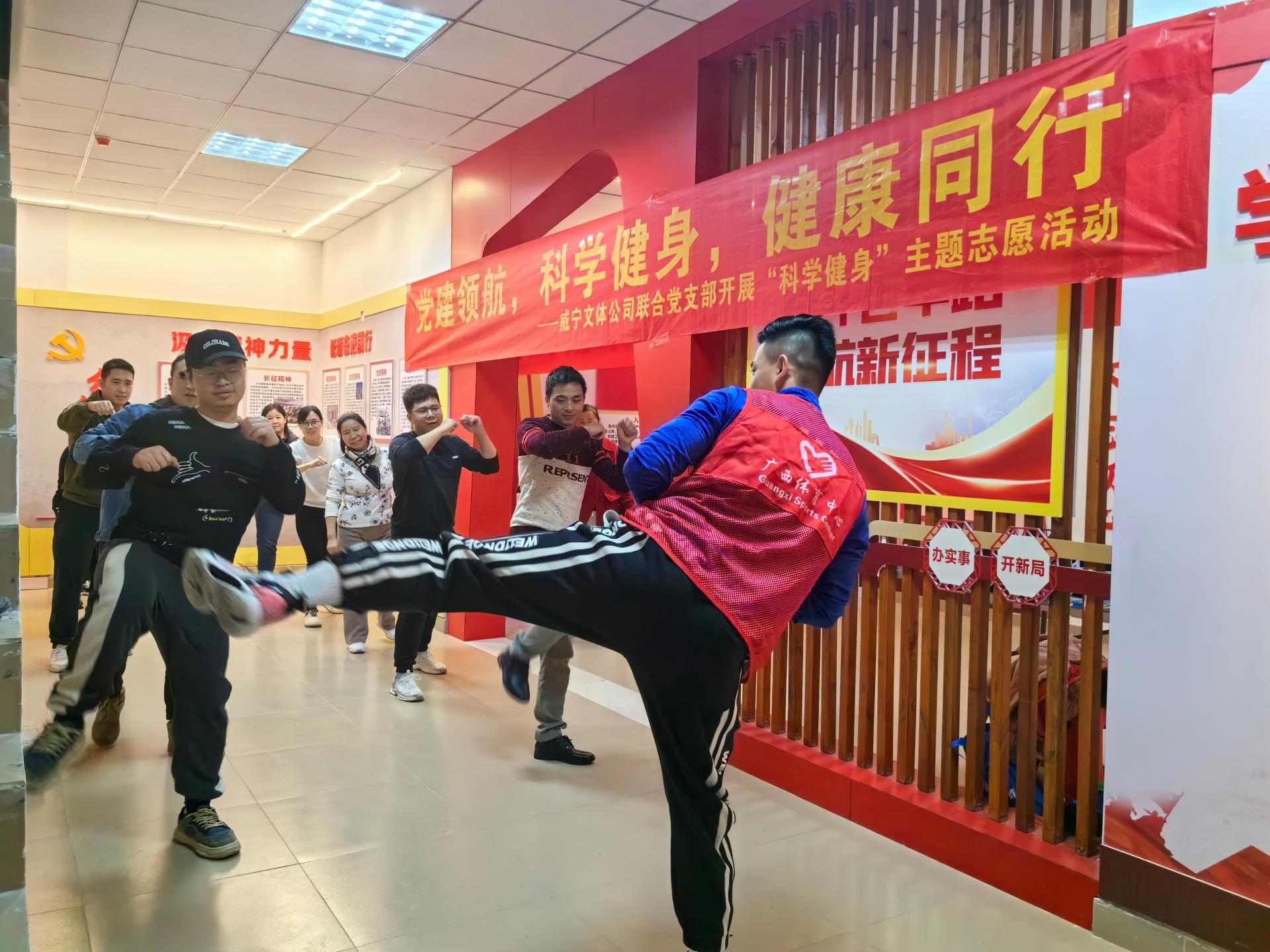 3月15日上午,文体公司联合党支部组织威拓普健身教练组成志愿者队伍,来到洪胜社区恒大帝景小区开展“党建领航 科学健身 健康通行”主题志愿活动,活动当天,根据不同年龄层次的居民需求,量身定制了科学的健身方案,并在现场进行示范教学,引导社区居民们养成良好的科学健身锻炼习惯。“正好我今天腰痛请假休息,教练你教的这套保健动作,我现在做完后真的是缓解了我上班久坐产生的腰肌劳损,绝了!”社区居民李先生在健身完之后兴奋说道。