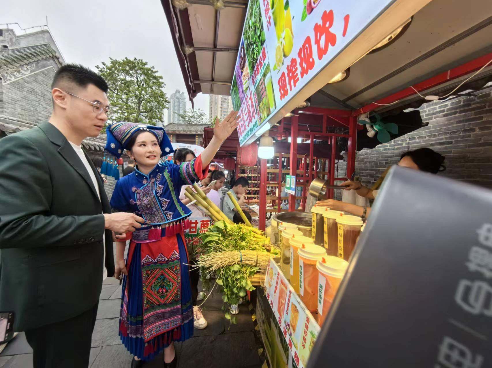 近年来,邕州古城·三街两巷把非遗文化传承保护作为铸牢中华民族共同体意识的“粘合剂”,采用“非物质文化遗产传承+民族团结进步创建”模式,将非遗民族文化融入景区经营,让游客们在三街两巷漫步时共享传统打金技艺、邕剧等非遗盛宴。今年4月,邕州古城·三街两巷作为第二届中国-东盟(南宁)非物质文化遗产周开幕式的举办点,以中国和东盟国家灿烂多元的非物质文化遗产项目为载体,为众多市民游客带来了不同民族、不同国家的传统戏剧、传统音乐、传统舞蹈等非遗项目文化体验,让民族团结之花在非遗传承中盛放。