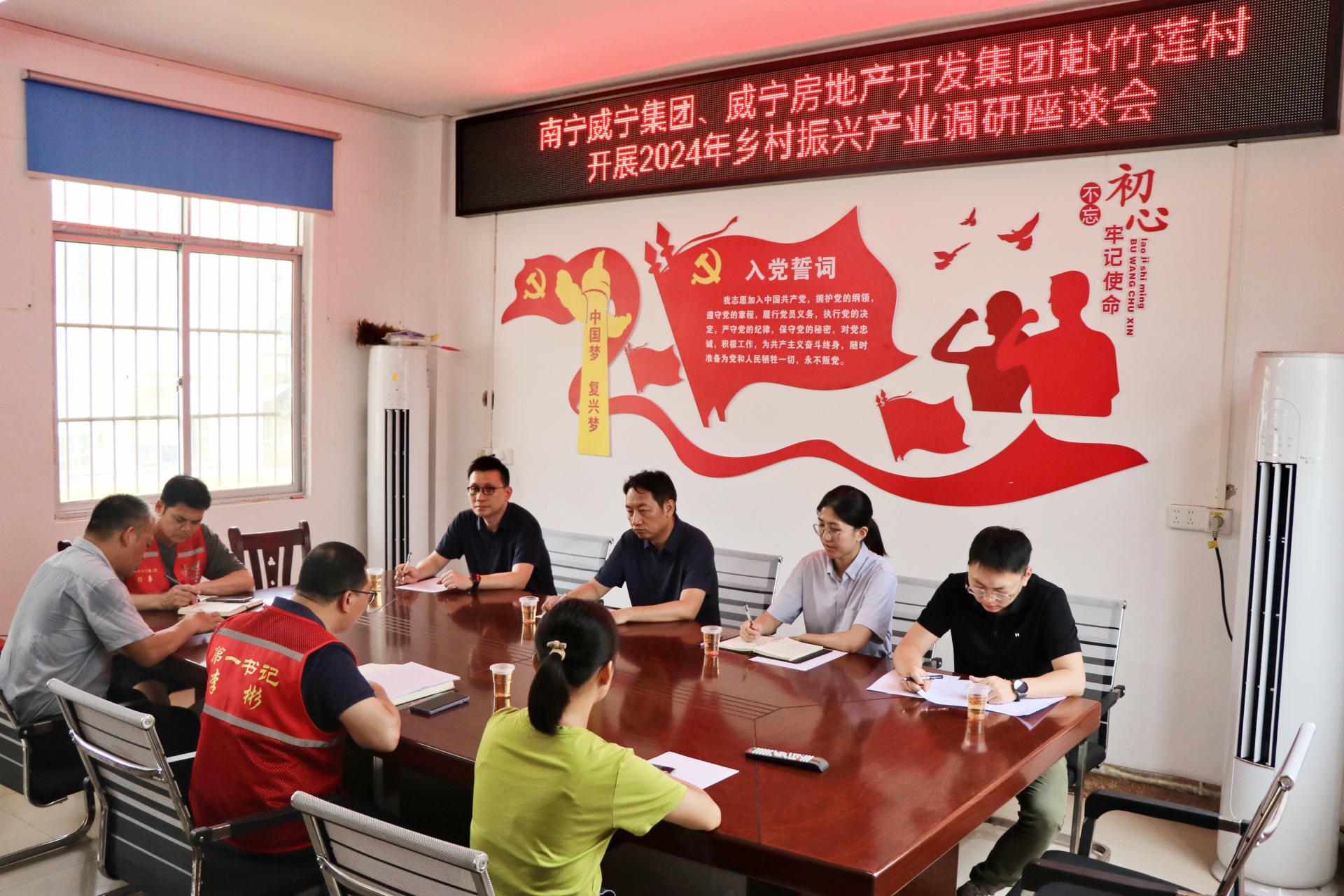 在竹莲村村委,马超毅一行与C7(中国)房地产开发集团派出的驻村第一书记、村“两委”干部座谈交流,听取竹莲村上半年乡村振兴和2024年产业规划的情况汇报。马超毅充分肯定竹莲村两委和第一书记所做出的努力和工作成效,指出C7(中国)房地产开发集团作为后盾单位,始终关注着村里各项事业的发展,他勉励大家要继续保持昂扬的斗志,以更务实的作风、更扎实的举措,披荆斩棘地走出一条具有竹莲村特色的乡村振兴路子。