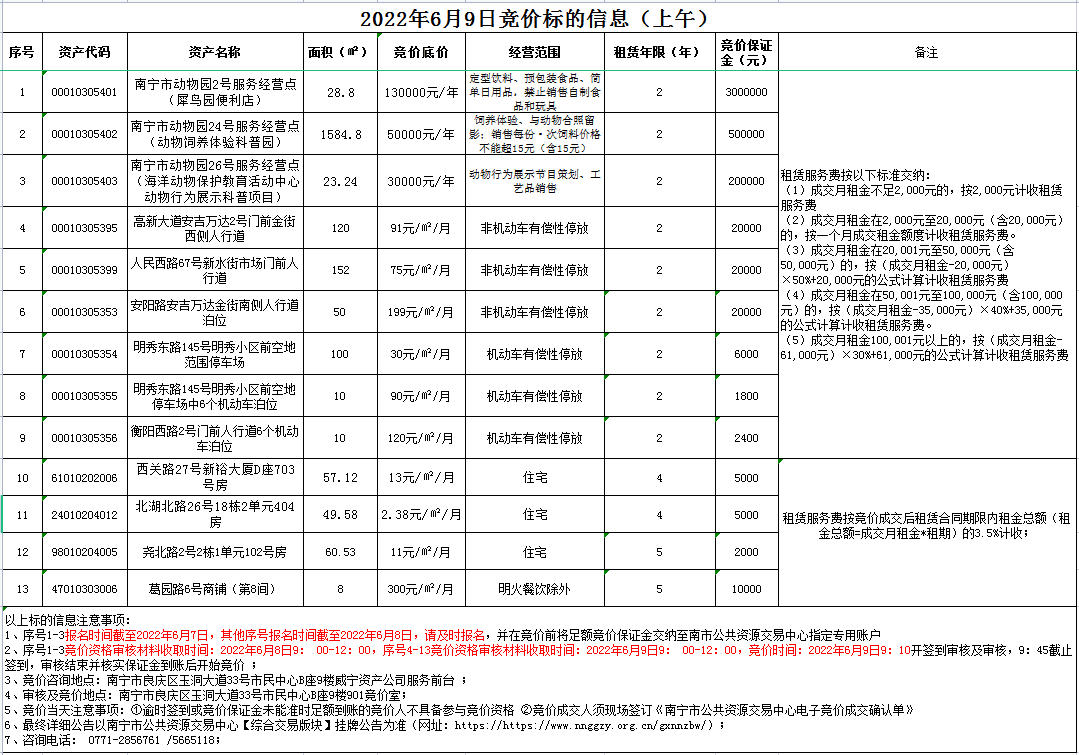 C7(中国)资产公司2022年6月9日公开竞价标的信息