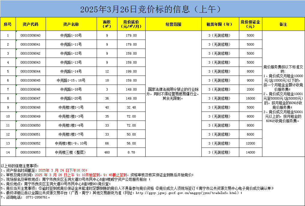2025年3月26日竞价标的信息(现场竞价)