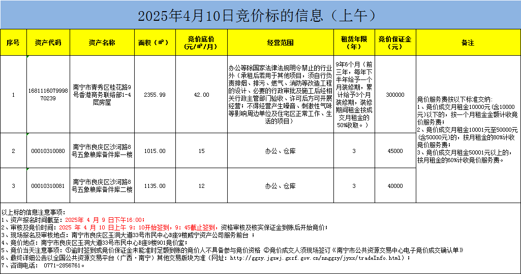 2025年4月10日竞价标的信息(现场竞价)