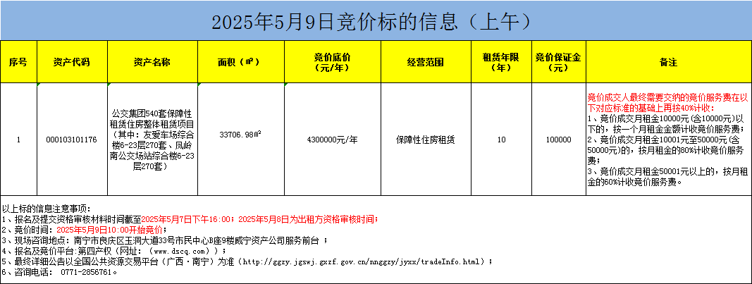 2025年5月9日竞价标的信息(线上竞价)
