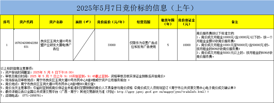 2025年5月7日竞价标的信息(现场竞价)