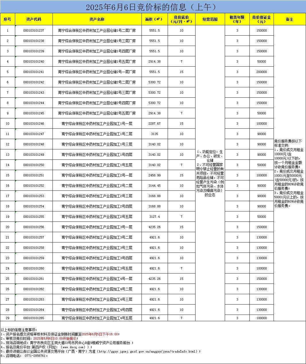 2025年6月5日竞价标的信息(线上竞价)