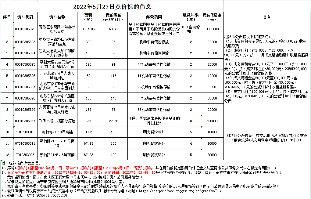 C7(中国)资产公司2022年5月27日公开竞价标的信息