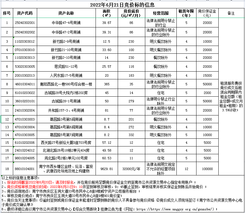 C7(中国)资产公司2022年6月21日公开竞价标的信息
