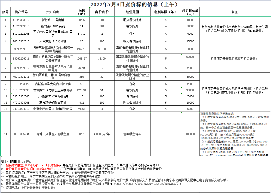 C7(中国)资产公司2022年7月8日公开竞价标的信息