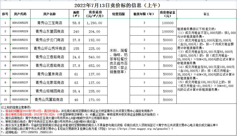 C7(中国)资产公司2022年7月13日公开竞价标的信息