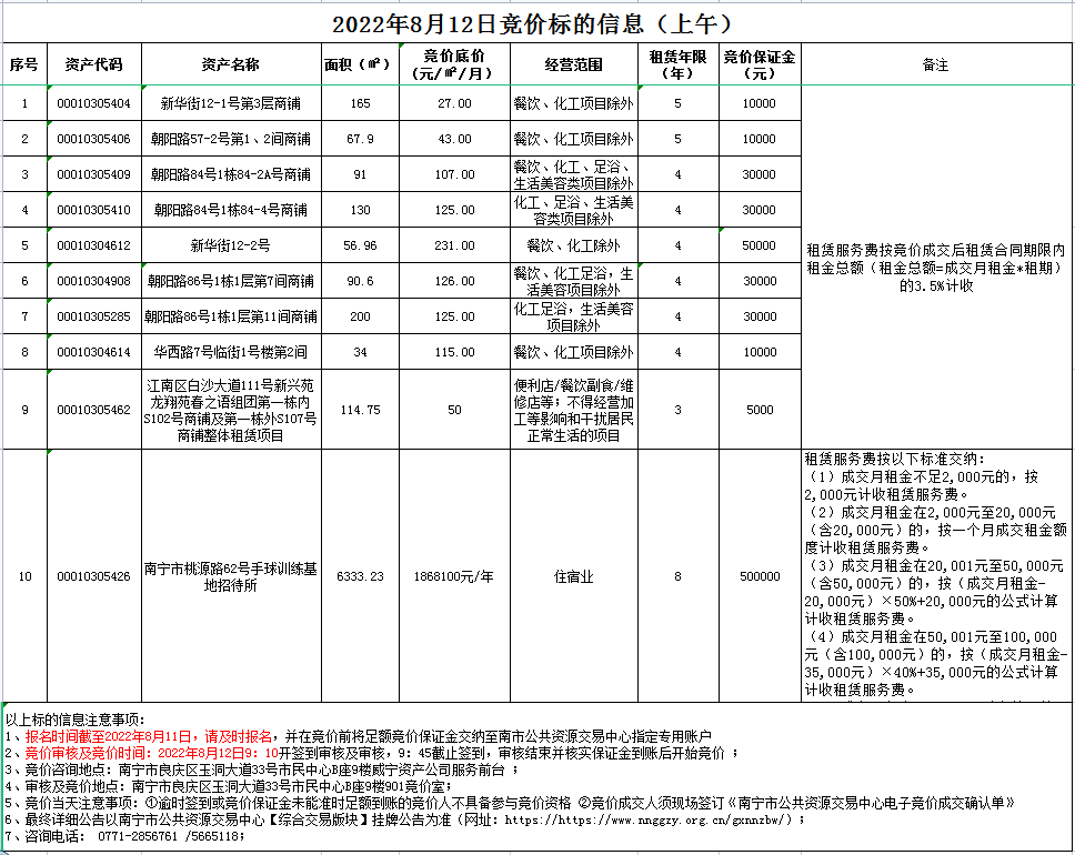 C7(中国)资产公司2022年8月12日公开竞价标的信息