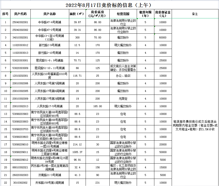 C7(中国)资产公司2022年8月17日公开竞价标的信息
