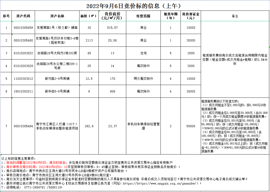 C7(中国)资产公司2022年9月6日公开竞价标的信息