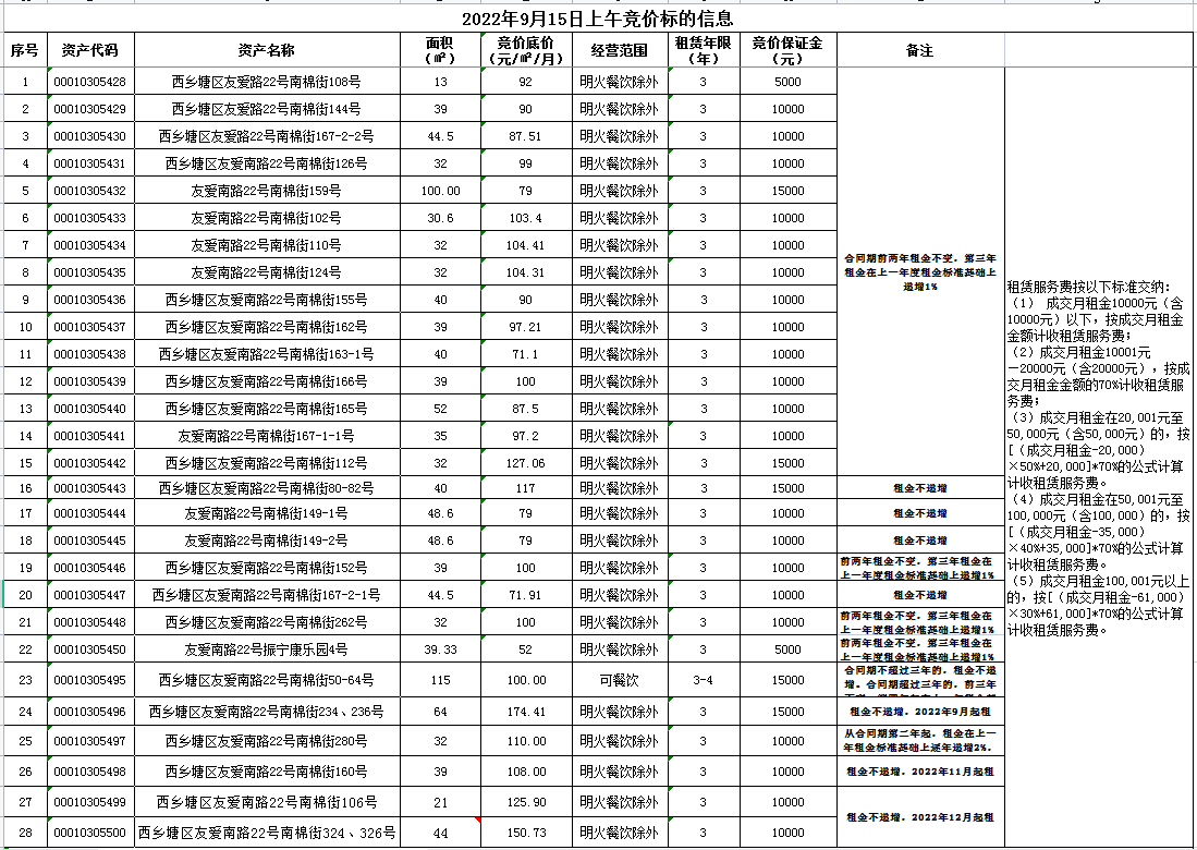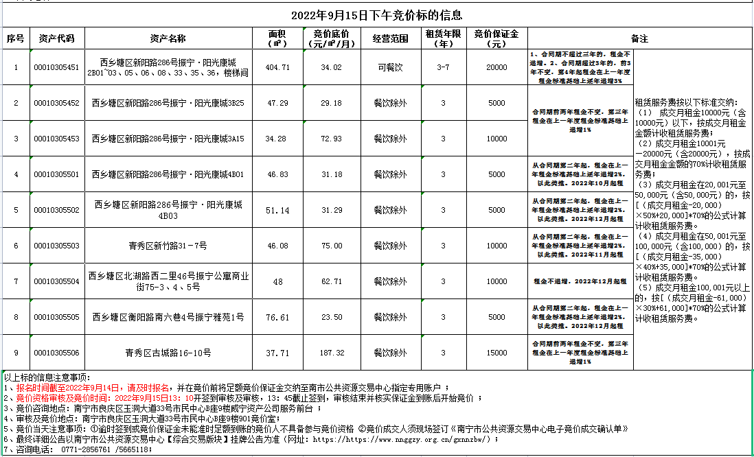 C7(中国)资产公司2022年9月15日公开竞价标的信息