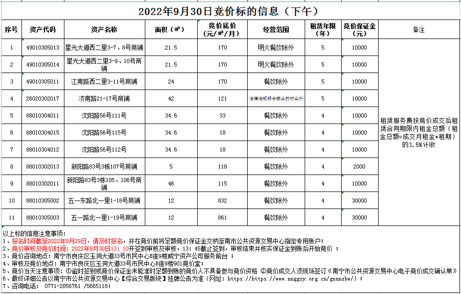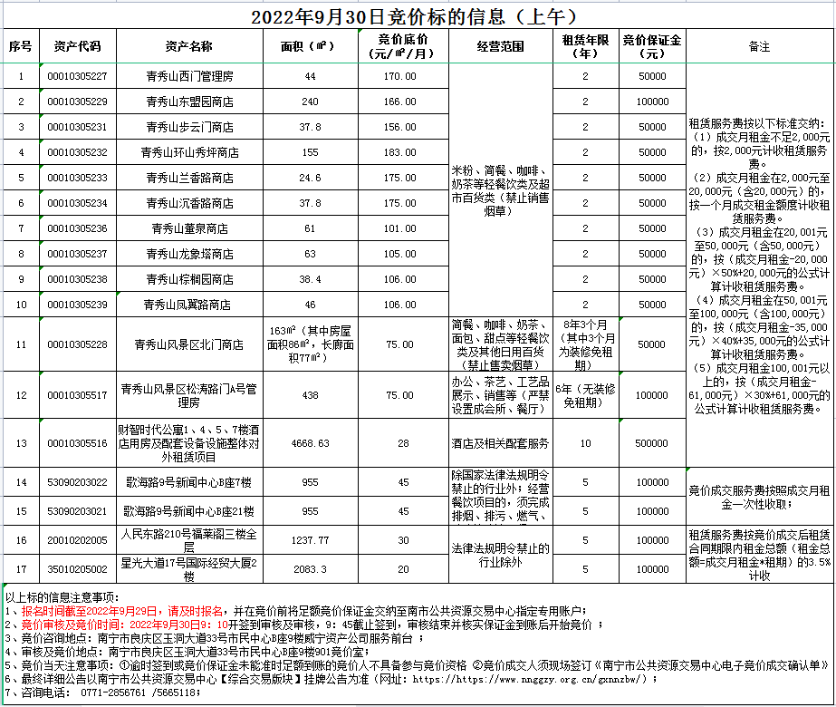 C7(中国)资产公司2022年9月30日公开竞价标的信息