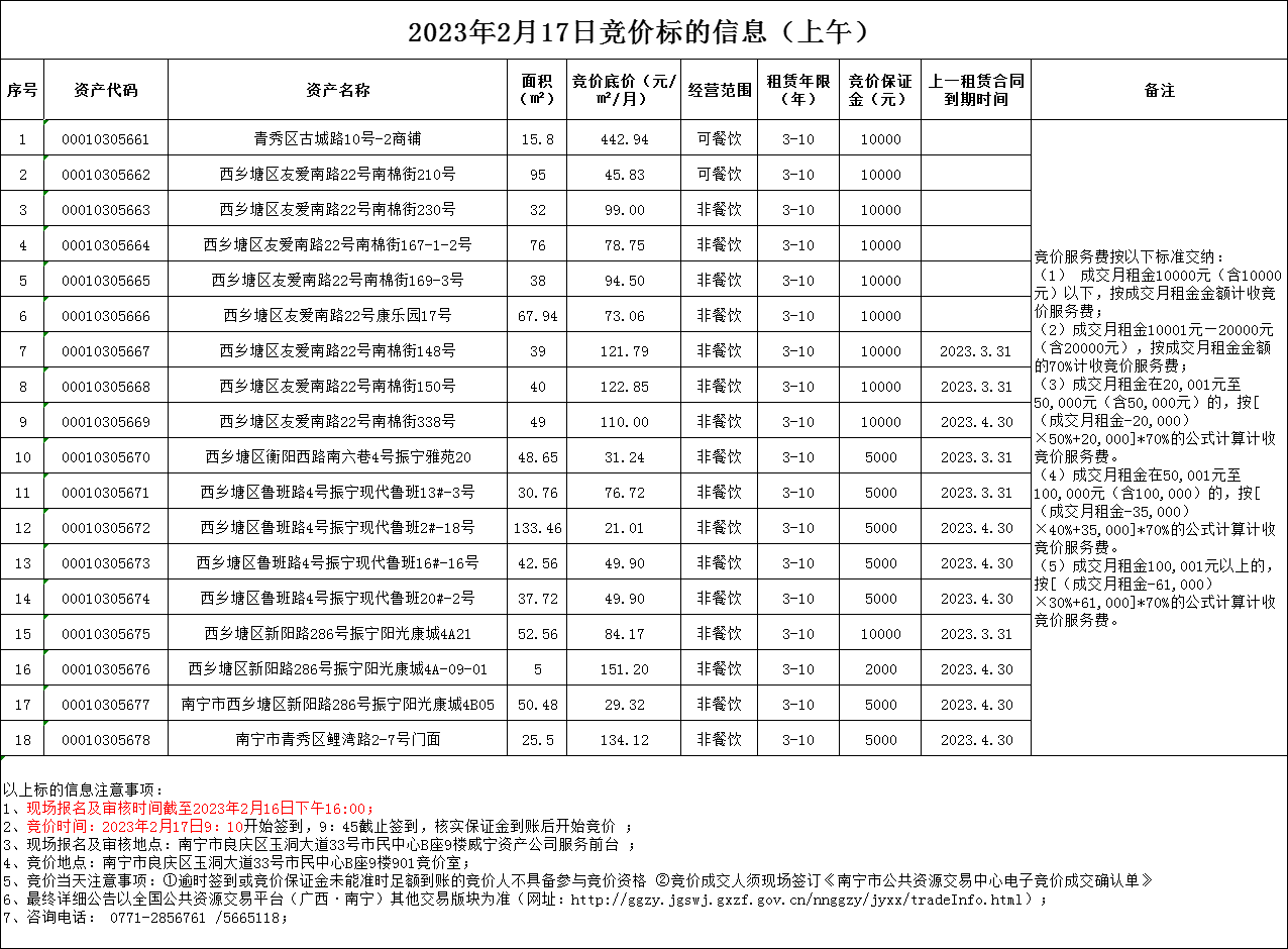 2023年2月17日竞价标的信息