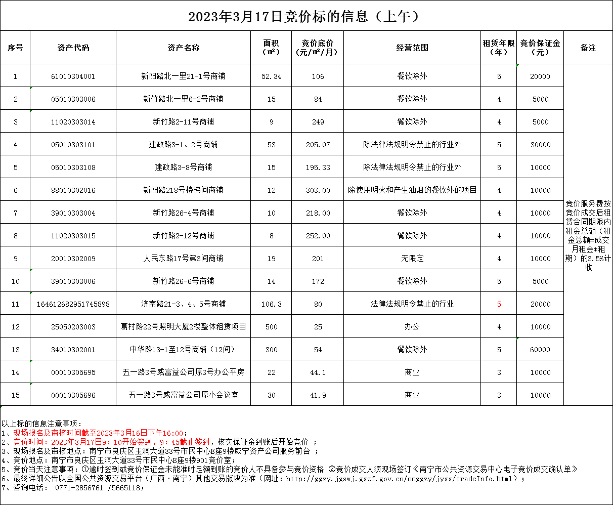 2023年3月17日竞价标的信息