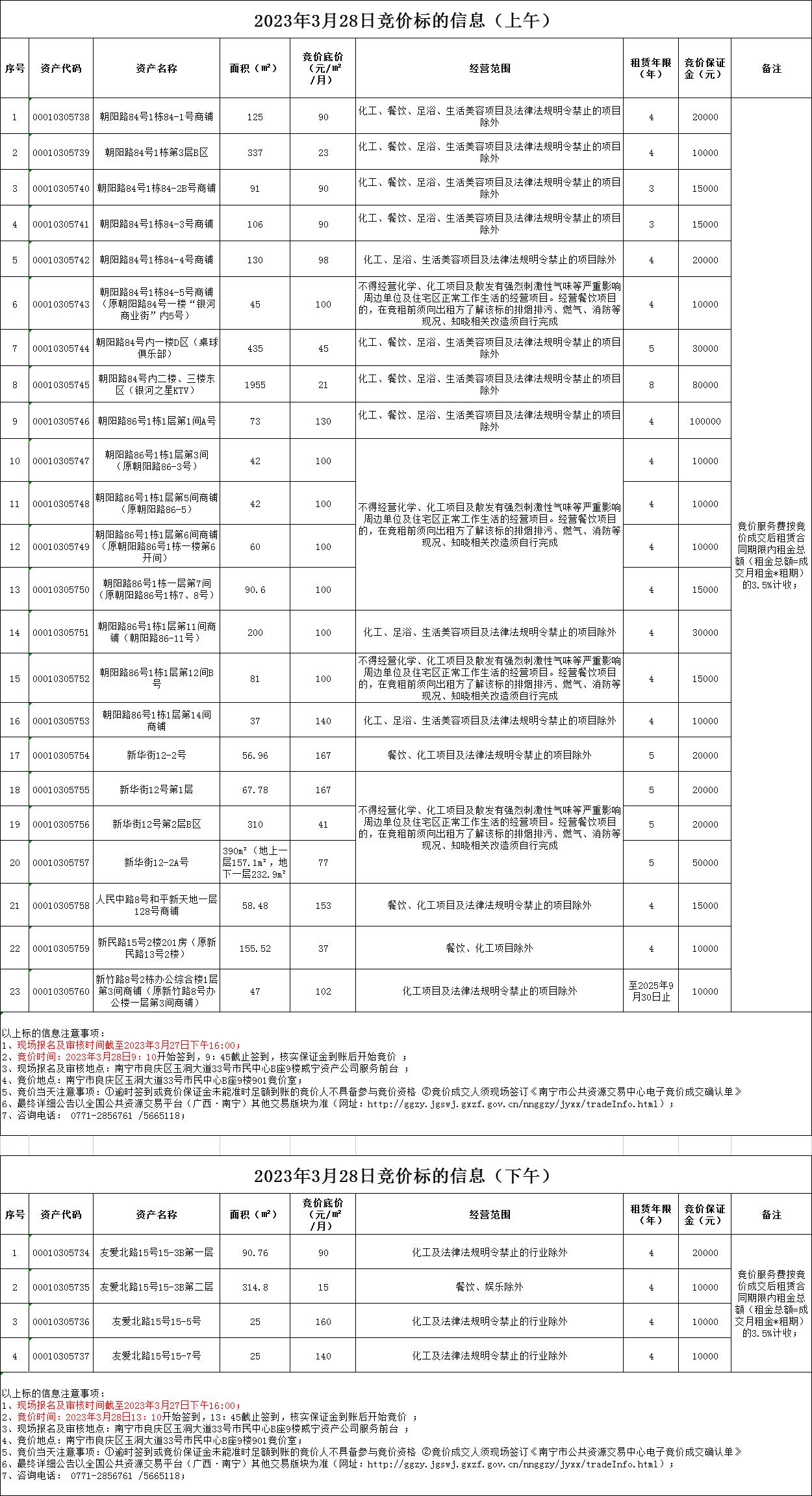 2023年3月28日竞价标的信息