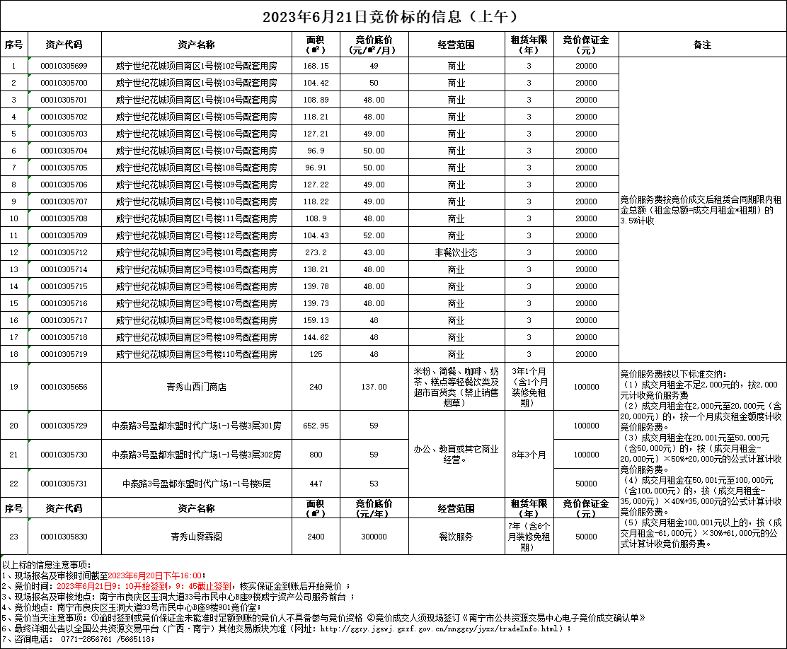 2023年6月21日竞价标的信息
