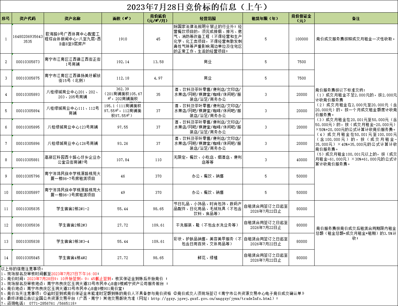 2023年7月28日竞价标的信息