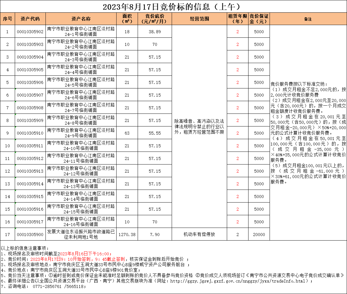 2023年8月17日竞价标的信息