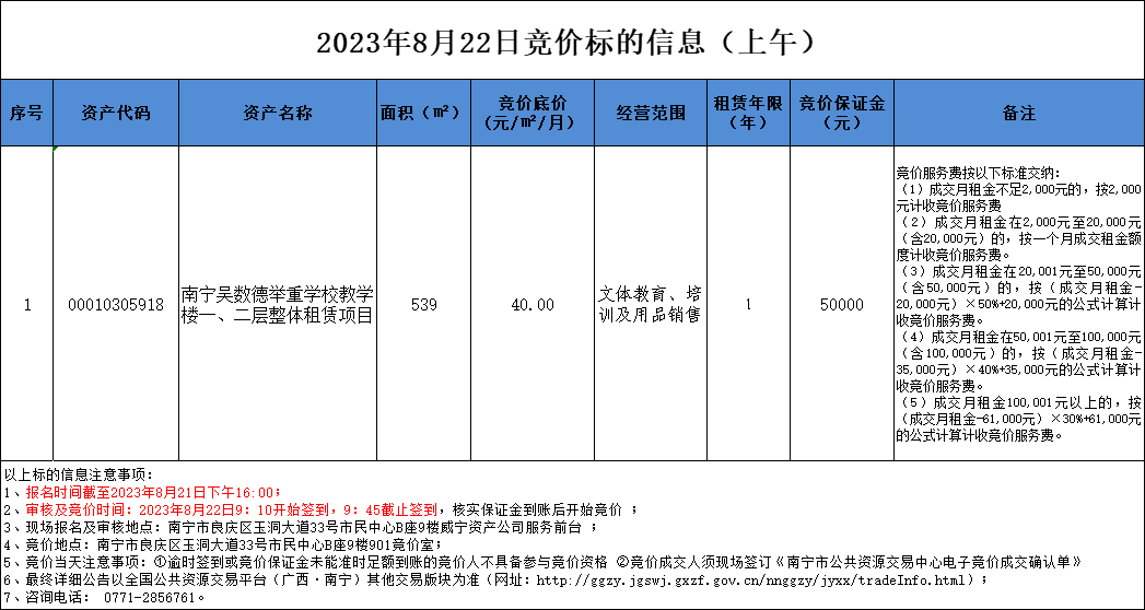 2023年8月22日竞价标的信息