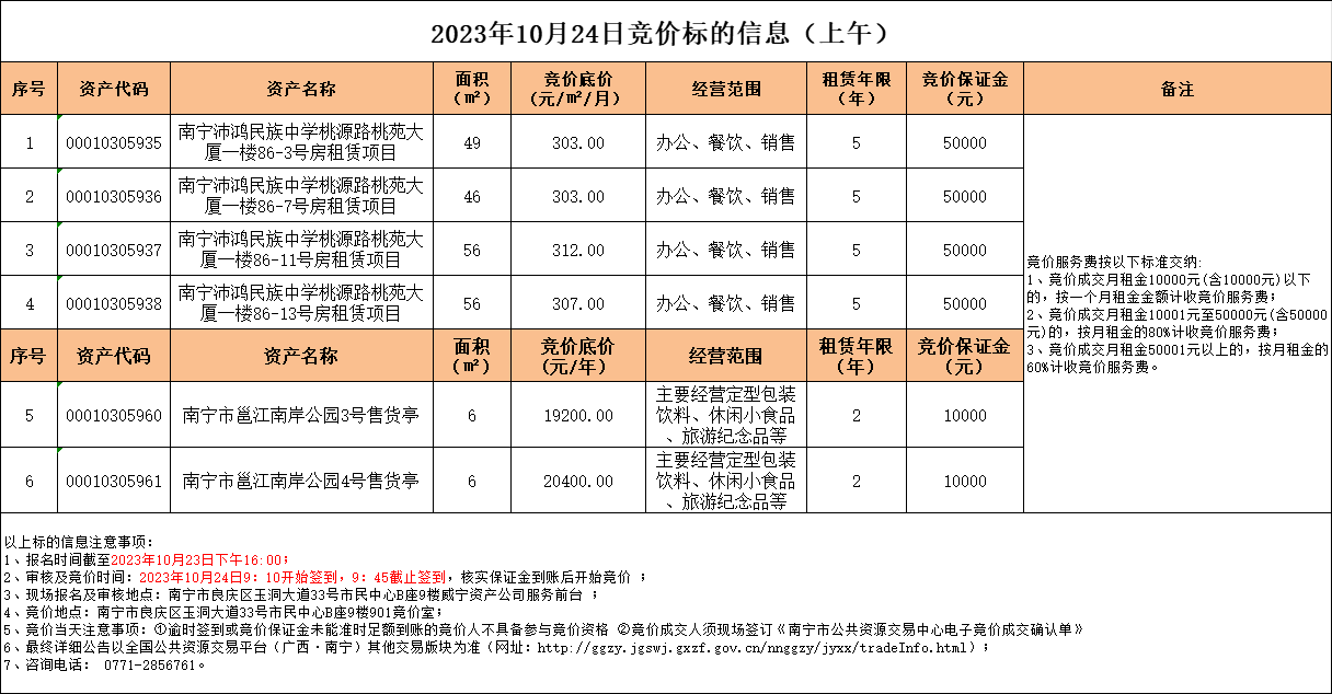 2023年10月24日竞价标的信息