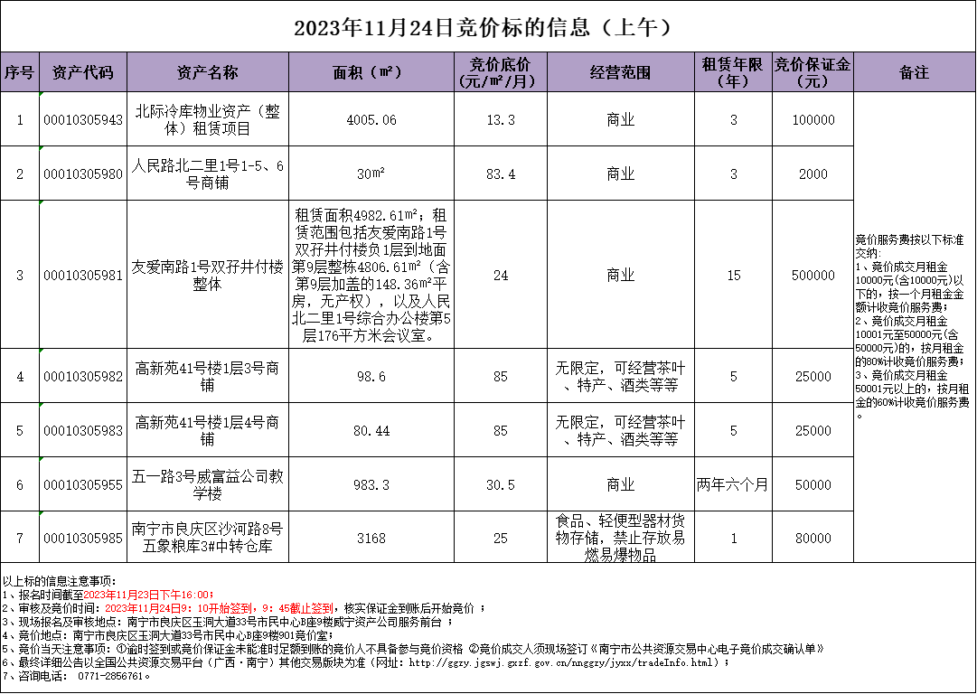 2023年11月24日竞价标的信息