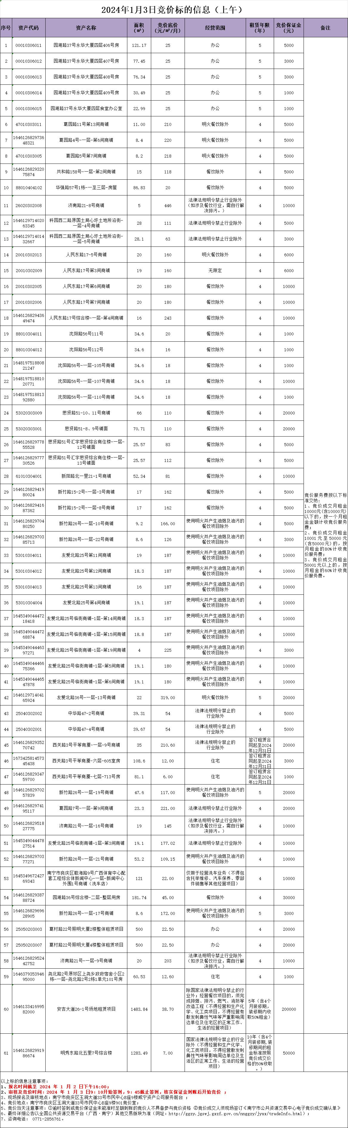 2024年1月3日竞价标的信息