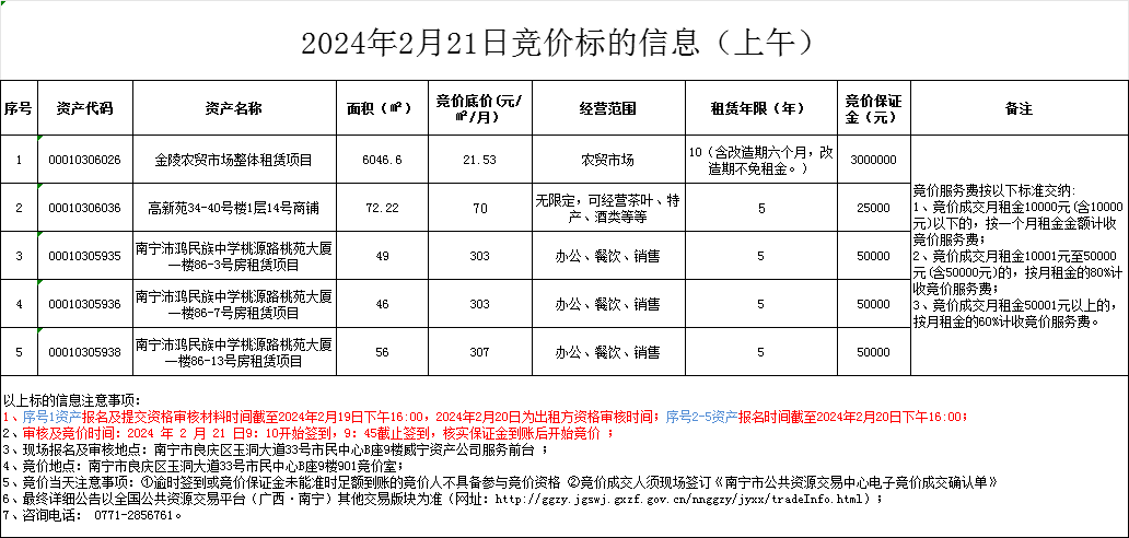 2024年2月21日竞价标的信息
