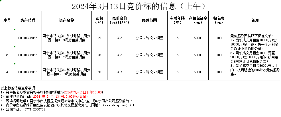 2024年3月13日竞价标的信息(线上竞价)