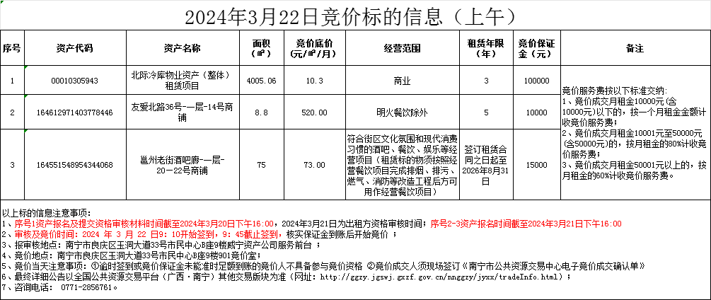 2024年3月22日竞价标的信息(线上竞价)