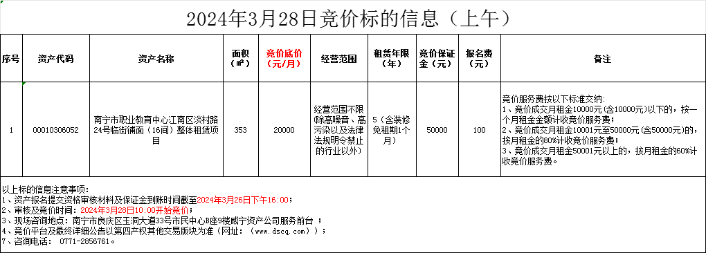 2024年3月28日竞价标的信息(线上竞价)