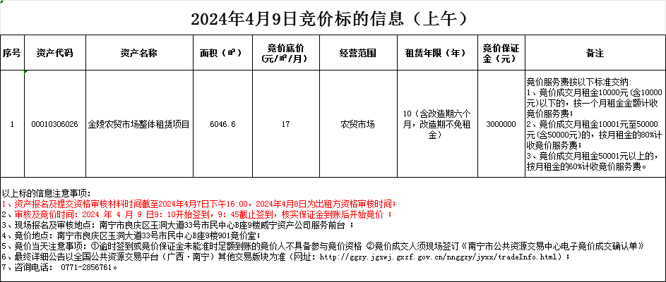 2024年4月9日竞价标的信息(线下报价)