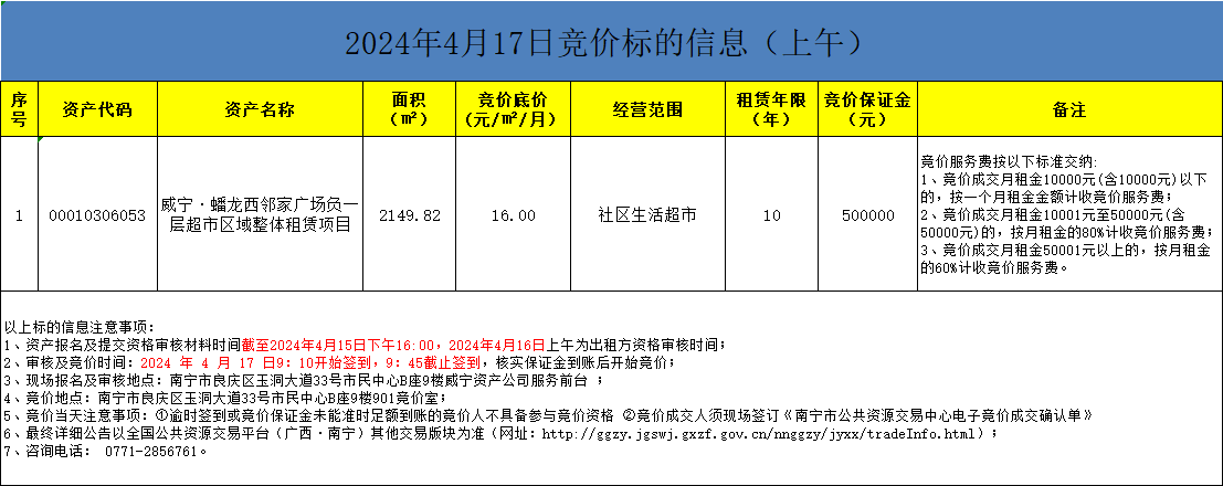 2024年4月17日竞价标的信息(现场竞价)