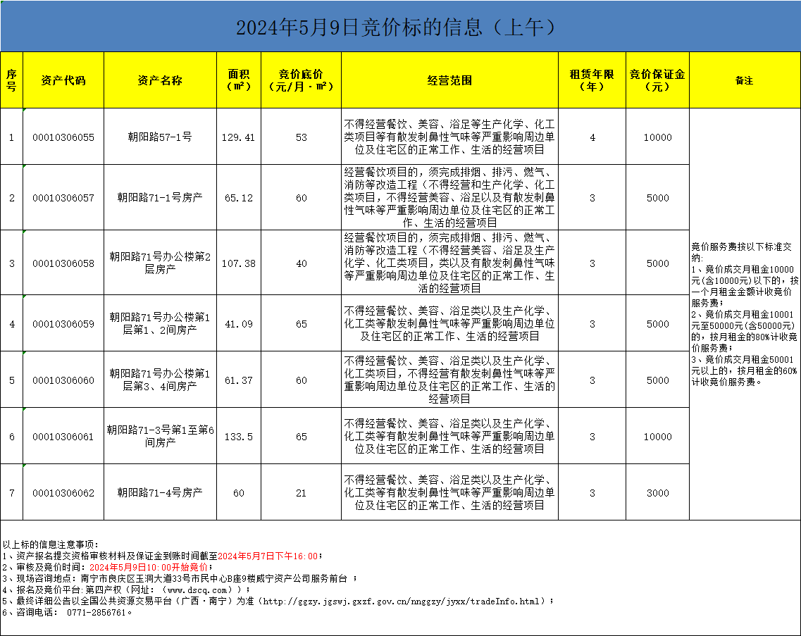 2024年5月9日竞价标的信息(线上竞价)