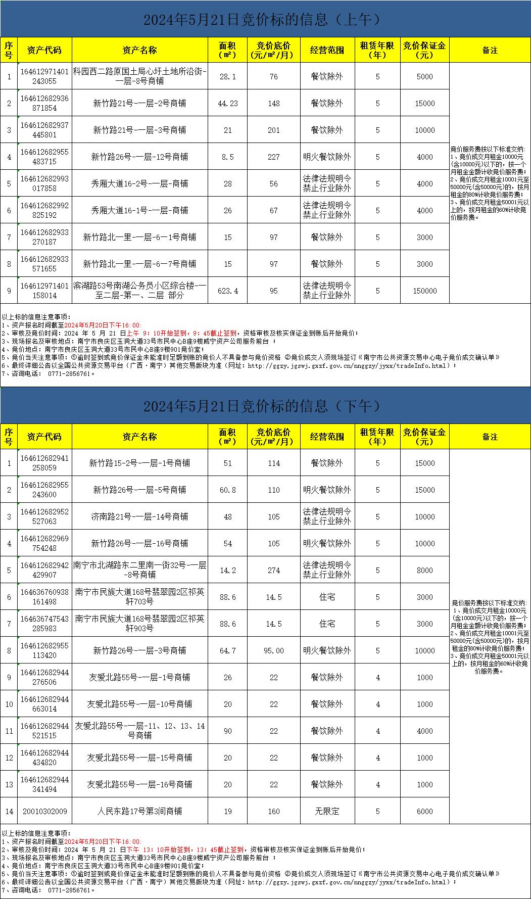 2024年5月21日竞价标的信息(现场竞价)