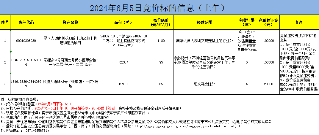 2024年6月5日竞价标的信息(现场竞价)