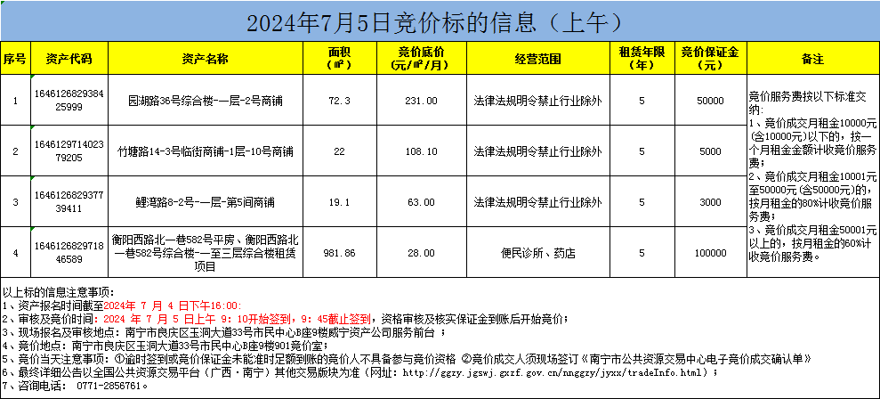 2024年7月5日竞价标的信息(现场竞价)