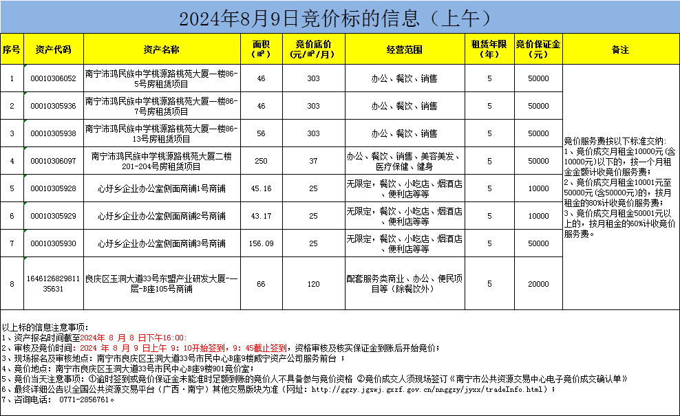 2024年8月9日竞价标的信息(现场竞价)