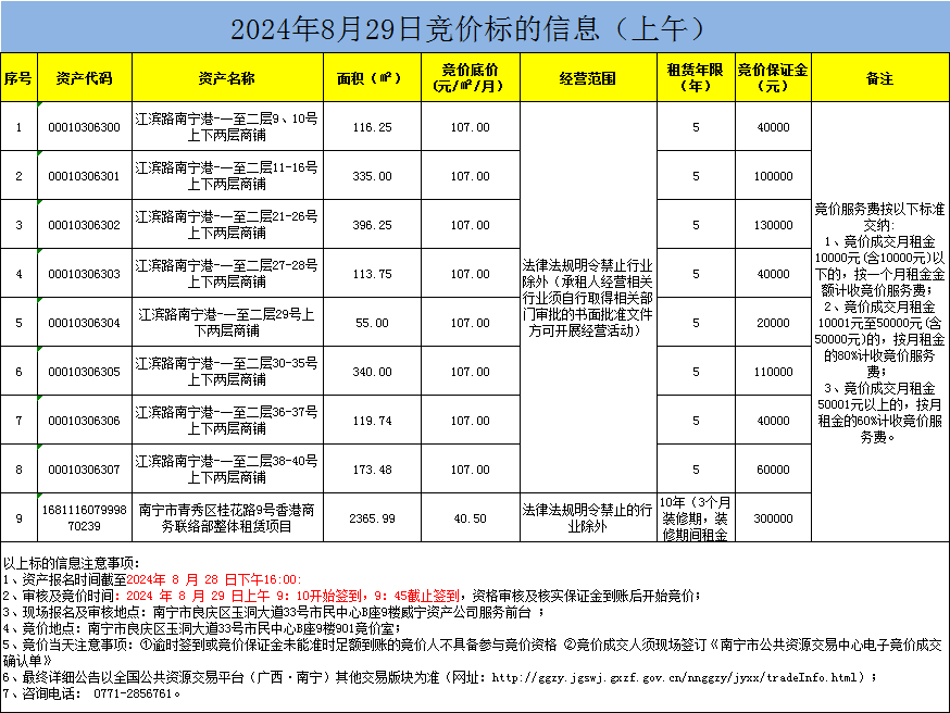 2024年8月29日竞价标的信息(现场竞价)