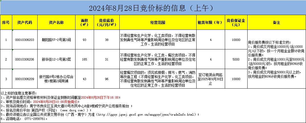 2024年8月28日竞价标的信息(线上竞价)