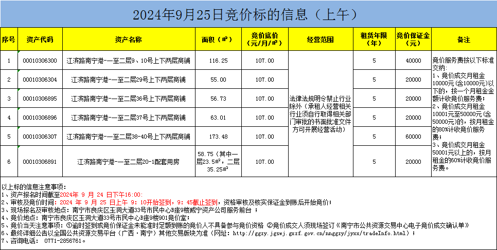 2024年9月25日竞价标的信息(现场竞价)