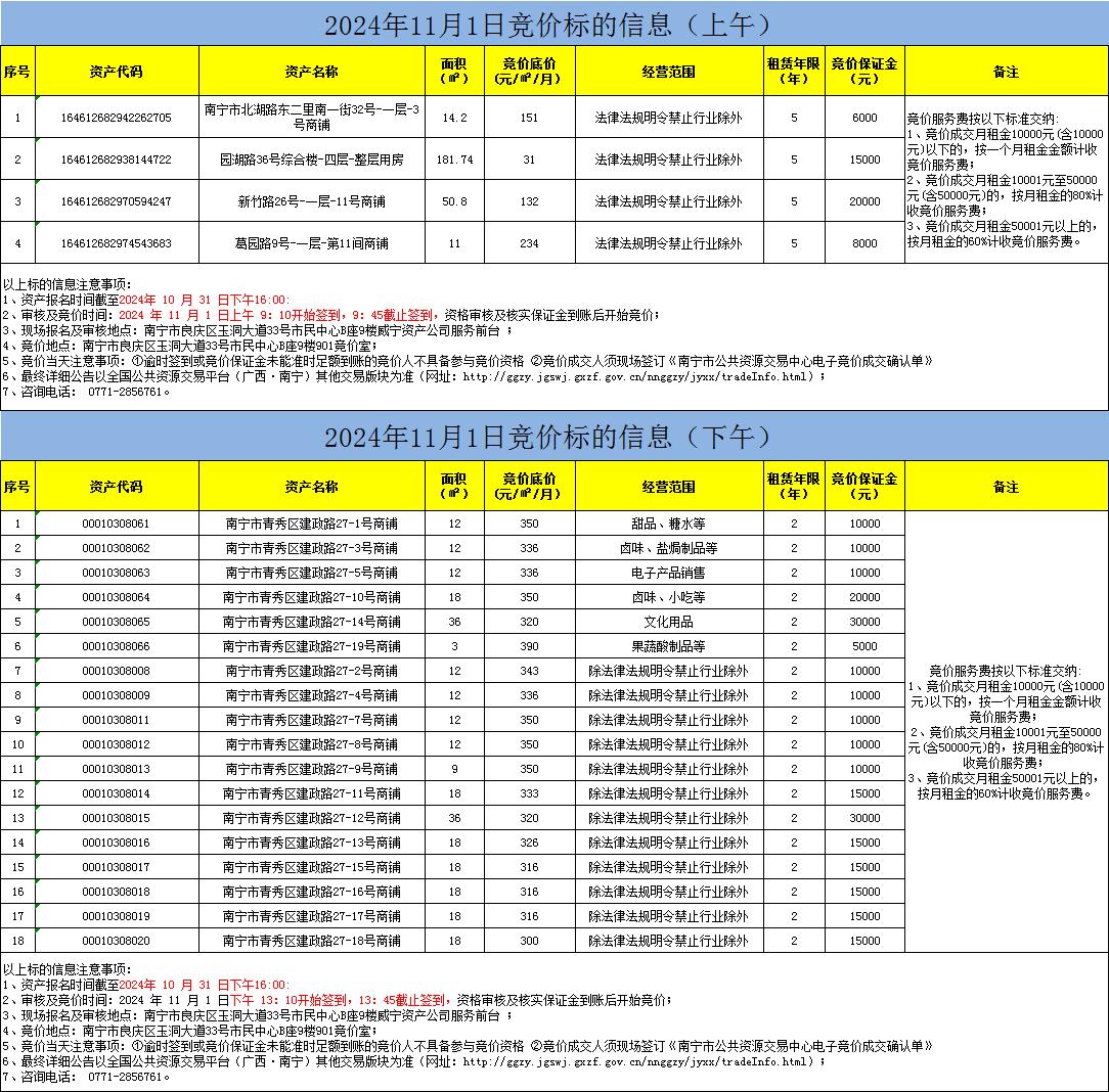 2024年11月1日竞价标的信息(现场竞价)