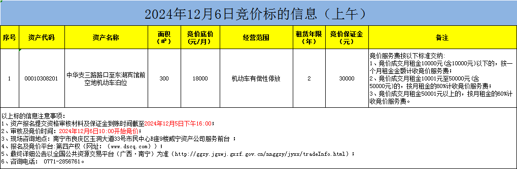 2024年12月6日竞价标的信息(线上竞价)