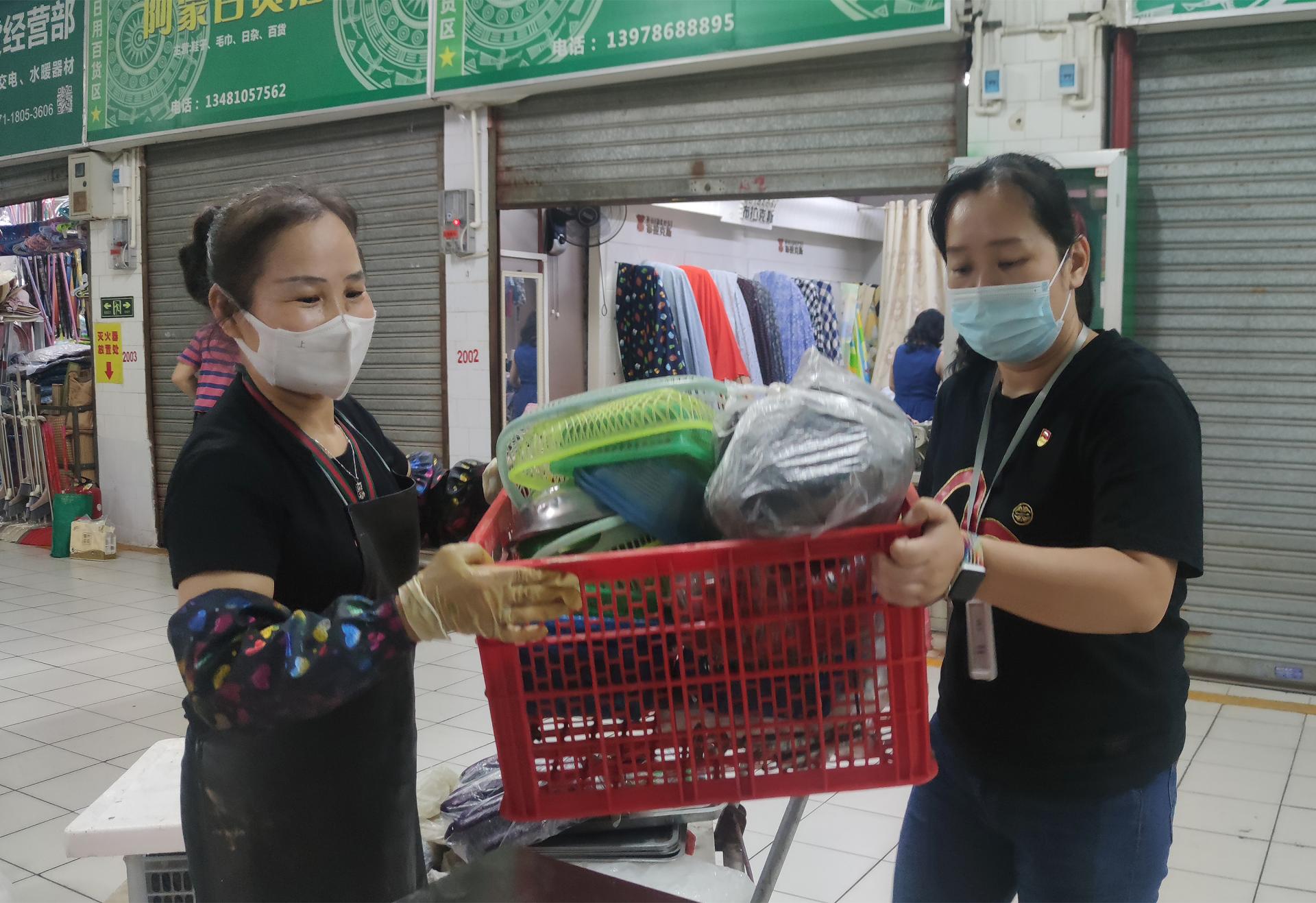 升级改造期间,廖丽萍帮助经营户搬运货品
