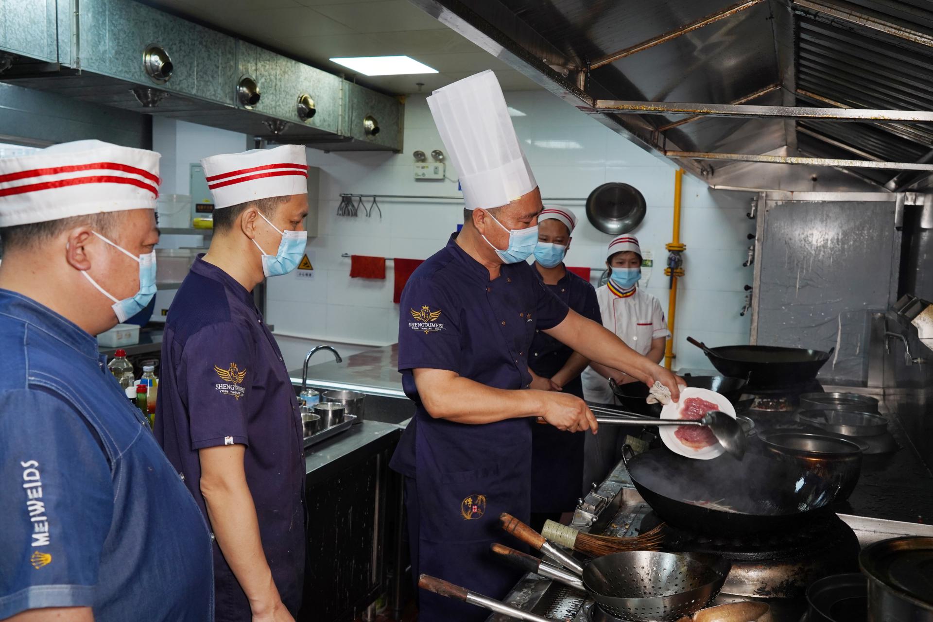在确立银河大酒店餐饮以“邕菜”作为经营特色后,餐饮部定时派出骨干厨师先后到高星级酒店及社会餐饮行业开展交流学习,同时为使厨师推陈出新,不断研发适应市场需求的特色餐饮,餐饮部在酒店厨房中实行厨师长负责制,强化厨师长的责权、利益关系。厨房人员配备、生产管理、薪酬分配、人员培训、质量把关、成本控制、菜肴创新,每一项都细化了具体的目标和考核办法,并通过岗位练兵、技术比武等方式营造浓厚的学习氛围,促进员工加强自身学习,提高本身技术水平,不但研发出“邕城鸡茸宴” “邕城老友鱼” “老友铜鼓饼”等传统邕菜,还创作出“鸿运脆皮猪手” “雷公根手打丸”“古城干捞老友粉”等系列招牌菜肴,赢得了众多食客的一致赞誉。餐饮部在做好门店经营的同时,还推出系列外卖菜品和点心,挖掘c7网站内循环资源,在集团饭堂和南宁学院等采取定期开团的方式,推出团购外卖菜品,力促外卖收入成为餐饮收入的增长点,截至今年5月底,餐饮外卖收入同比增长53.27%。