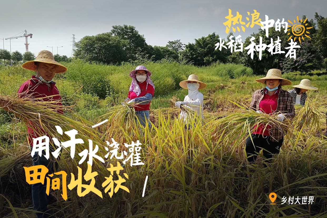 炎炎三伏天,稻谷收获正当时。乡村大世界的员工们穿梭在田野之间忙碌,为园区的建设和发展贡献“热辣”力量。