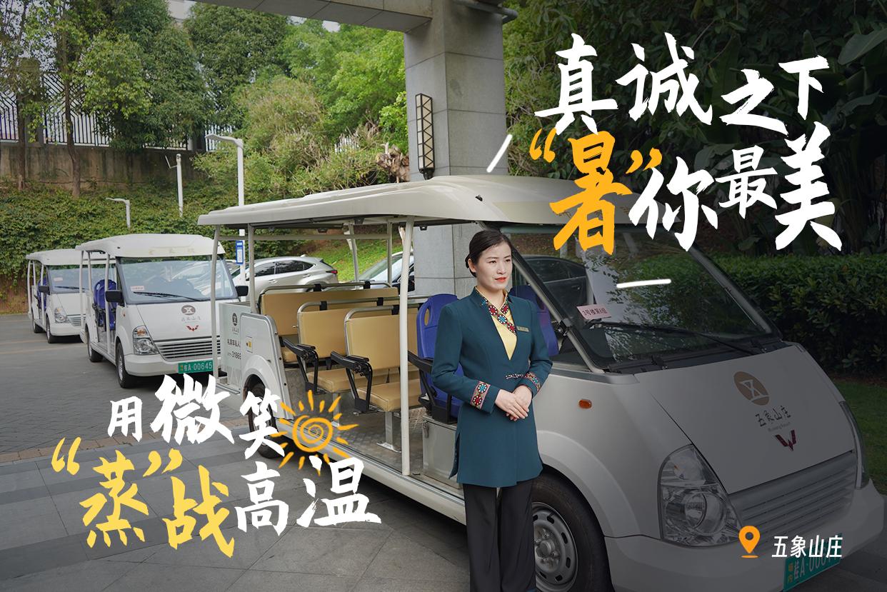 气温持续攀升,五象山庄礼宾人员仍保持最佳仪态,用饱满的热情对待每一位宾客。