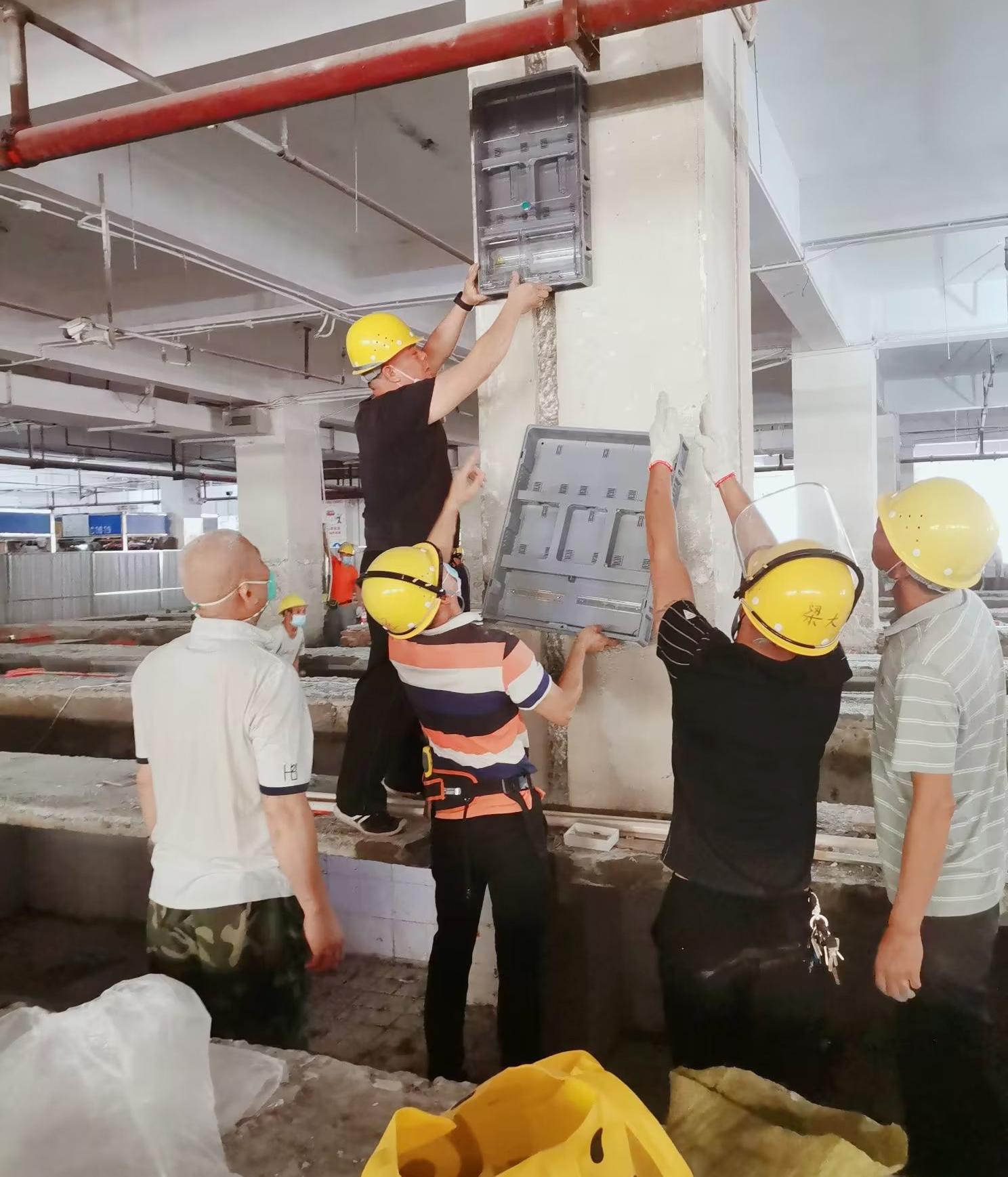 水电专班抢抓工程进度保障水街市场电路改造